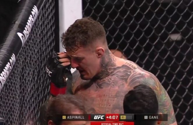 🔹4:30 Gane pokes Tom. The fight is called off.pic.twitter.com/2irSu2JXeS— MMA On Point (@OnPointMMA) October 26, 2025