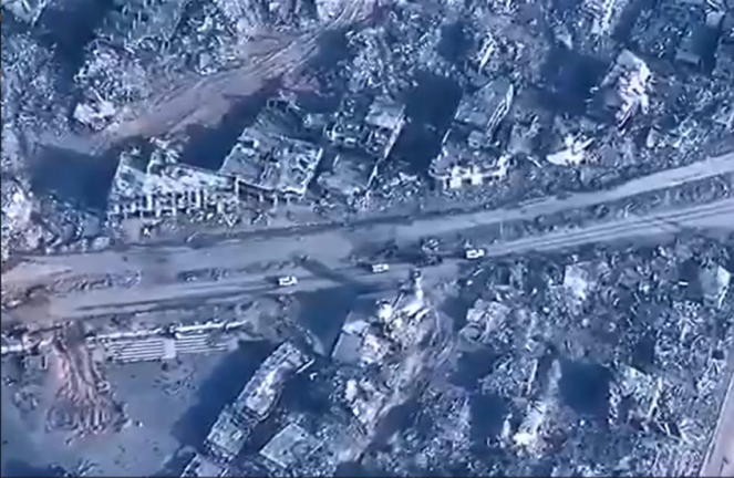 ويظهر هذا الفيديو عمليات التطهير على طريق صلاح الدين على طول طريق لوجستي رئيسي يربط شمال غزة بجنوبها.