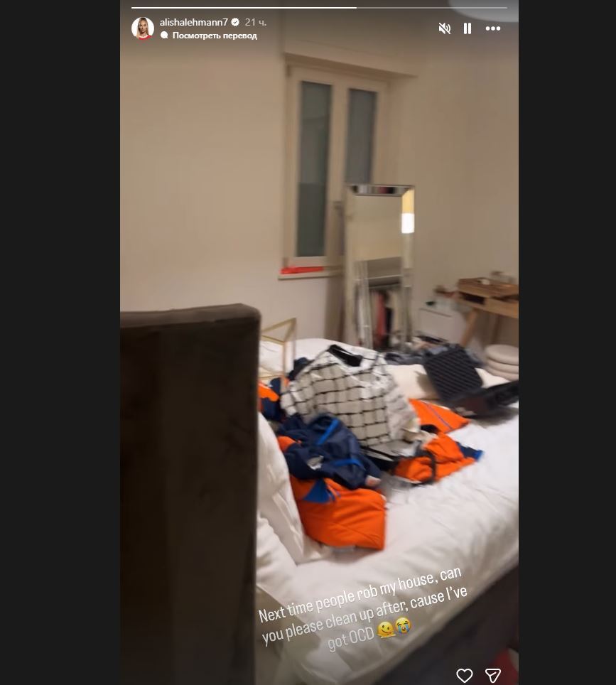 وقد شاركت الفيديو الذي يظهر آثار الاقتحام في منزلها قرب بحيرة كومو مع متابعيها البالغ عددهم 16.2 مليون على “إنستغرام”.