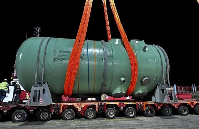 ووصل وعاء الضغط الخاص بالوحدة الأولى إلى ميناء الضبعة التخصصي في 21 أكتوبر 2025، بعد نقله من روسيا عبر سفن متخصصة، في عملية لوجستية معقدة استغرقت أسابيع، وتم خلالها تأمينه وفق أعلى معايير السلامة العالمية.