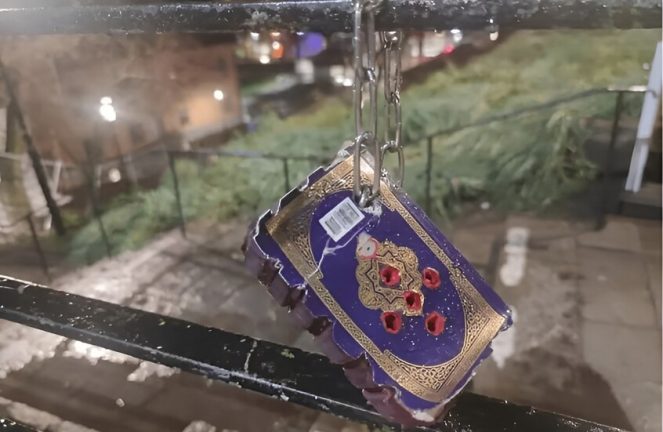 شهد مسجد ستوكهولم الكبير في العاصمة السويدية اعتداء عنصريا جديدا، حيث عثر على نسخة من المصحف مربوطة بسلسلة حديدية إلى السياج المحاذي للمدخل، وتحمل آثار إطلاق 6 رصاص مباشرة عليها.