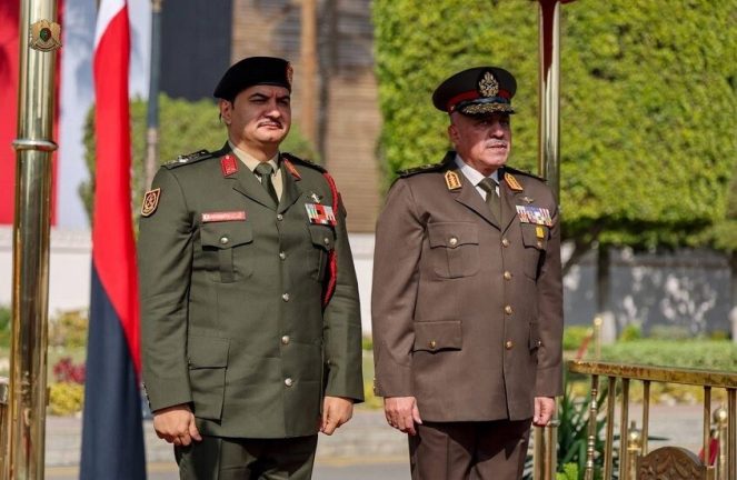 وعقد الفريق صدام حفتر اجتماعا رسميا مع القائد العام للقوات المسلحة المصرية وزير الدفاع والإنتاج الحربي، جرى خلاله بحث آفاق التعاون المشترك بين الجانبين، خاصة في مجالات التدريب العسكري، ورفع كفاءة الكوادر، وتبادل الخبرات، بما يسهم في تعزيز القدرات المهنية للمؤسستين العسكريتين، ودعم جهود الاستقرار في المنطقة.