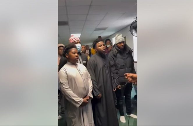 وثق مقطع فيديو لحظة اعتناق 7 أشقاء أمريكيين الإسلام في مسجد الحق بمدينة بالتيمور بولاية ماريلاند الأمريكية خلال الأيام الأولى من شهر رمضان المبارك.