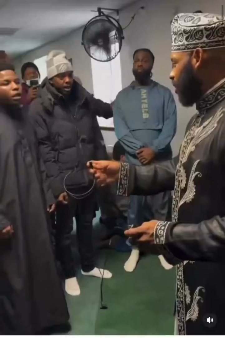 وأظهر الفيديو الأشقاء السبعة وهم يقفون إلى جانب الإمام داخل المسجد، مرددين الشهادة بصوت واحد.