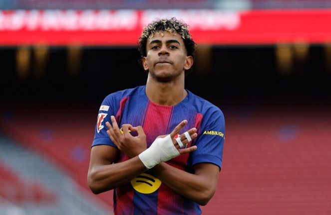 وتألق النجم الإسباني الشاب لامين جمال بإحرازه ثلاثة أهداف متتالية “هاتريك” في الدقائق (28، 37، 69) وتكفل زميله المهاجم البولندي روبرت ليفاندوفسكي بتسجيل الهدف الرابع عندما كان اللقاء يلفظ أنفاسه الأخيرة.