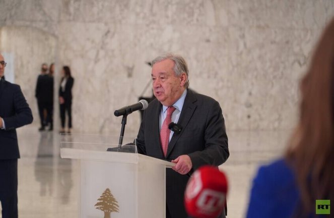 طالب الأمين العام للأمم المتحدة أنطونيو غوتيريش خلال زيارته إلى بيروت اليوم إسرائيل و”حزب الله” بوقف الحرب، والوصول إلى حل.