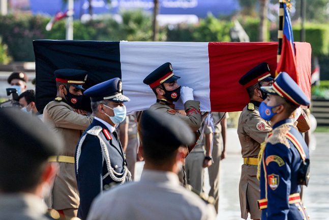 وتقدم الرئيس المصري عبد الفتاح السيسي، الجنازة التي أقيمت أمام النصب التذكاري للجندي المجهول بمنطقة المنصة بمدينة نصر شرقي القاهرة، وشارك في الجنازة رئيس الحكومة المصرية ووزير الدفاع وشيخ الأزهر الدكتور أحمد الطيب وكبار رجال الدولة المصرية.