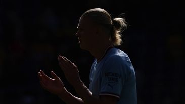 سلطت عدسات الكاميرات الأضواء على النرويجي إيرلينغ هالاند هداف مانشستر سيتي خلال مباراته أمام مضيفه وولفرهامبتون، في اللقاء الذي جمعهما اليوم السبت، في الدوري الإنجليزي الممتاز.