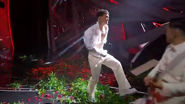 مطرب غاضب يخرّب ديكور المسرح في مهرجان سان ريمو الموسيقي! (فيديو)