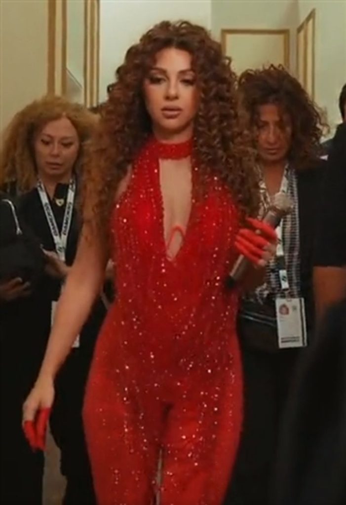 ميريام فارس في أحدث ظهور.. إطلالة حمراء جريئة في السعودية (صور)