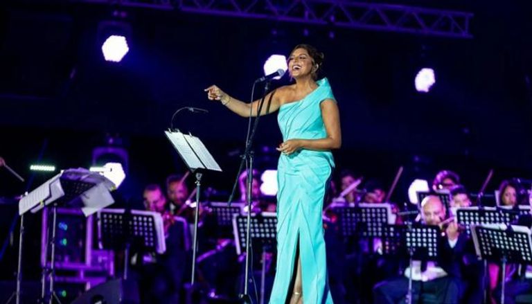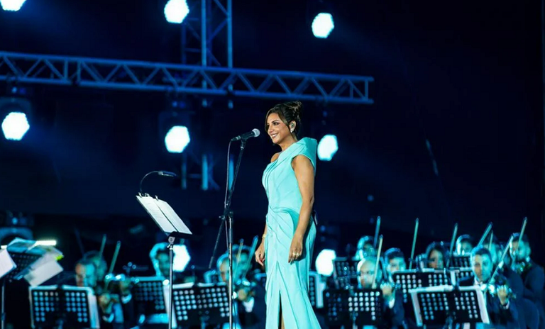 وحرصت الفنانة المصرية على توجيه التحية للفرقة الموسيقية بقيادة المايسترو هاني فرحات.