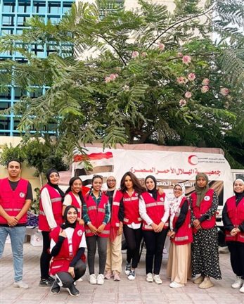 نشرت الفنانة المصرية زينة مجموعة من الصور لها وهي تشارك مع الهلال الأحمر المصري لدعم فلسطين، برفقة نجليها عز الدين وزين الدين.