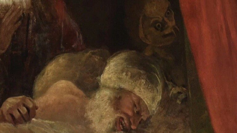 يذكر أن اللوحة التي أبدعها الفنان لمعرض “شكسبير” في لندن، خضعت للترميم أكثر من مرة على مدار قرنين من الزمن، ما أدى لاختفاء ملامح الصورة المشؤومة تدريجيا. وتقع صورة “الوحش” فوق رأس بوفورت المحتضر.