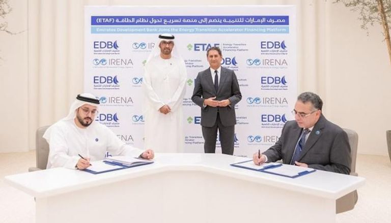 وجاء ذلك خلال توقيع اتفاقية شراكة بين «مصرف الإمارات للتنمية» و«آيرينا» بحضور الدكتور سلطان بن أحمد الجابر، وزير الصناعة والتكنولوجيا المتقدمة، رئيس مؤتمر الأطراف COP28، ورئيس مصرف الإمارات للتنمية؛ وفرانشيسكو لا كاميرا، المدير العام للوكالة الدولية للطاقة المتجددة «آيرينا»، وقام بالتوقيع كل من أحمد محمد النقبي، الرئيس التنفيذي لمصرف الإمارات للتنمية، والدكتور أحمد بدر، مدير تسهيل تمويل المشروعات بالوكالة الدولية للطاقة المتجددة «آيرينا».