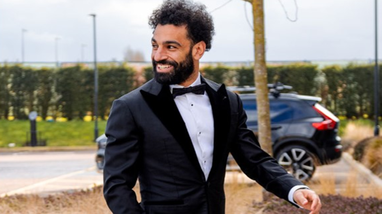 ونشر الحساب الرسمي لنادي ليفربول صورة لصلاح لحظة وصوله إلى مركز تدريبات فريقه يوم الأربعاء وهو يرتدي بدلة سوداء أنيقة، مكتملة بقميص أبيض وربطة عنق سوداء (فراشة)،